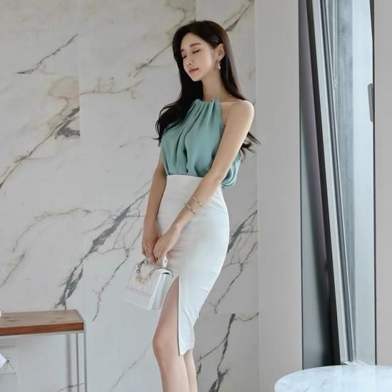 blue×White dress Set