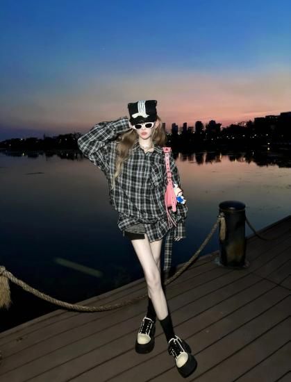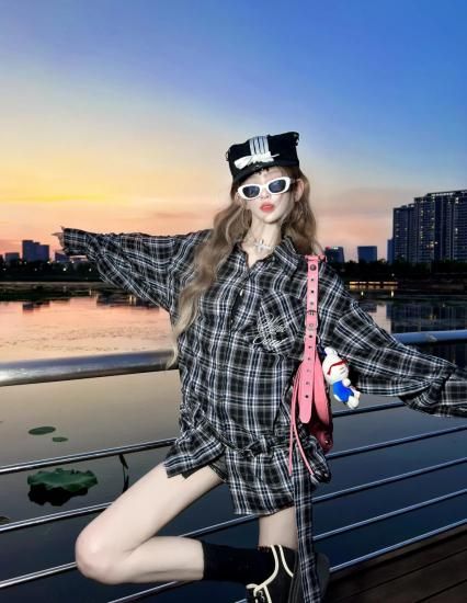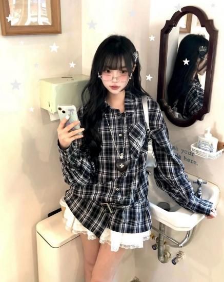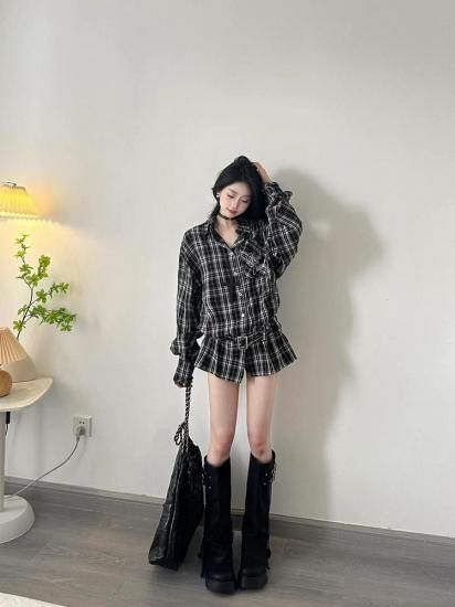 チェックシャツトップス